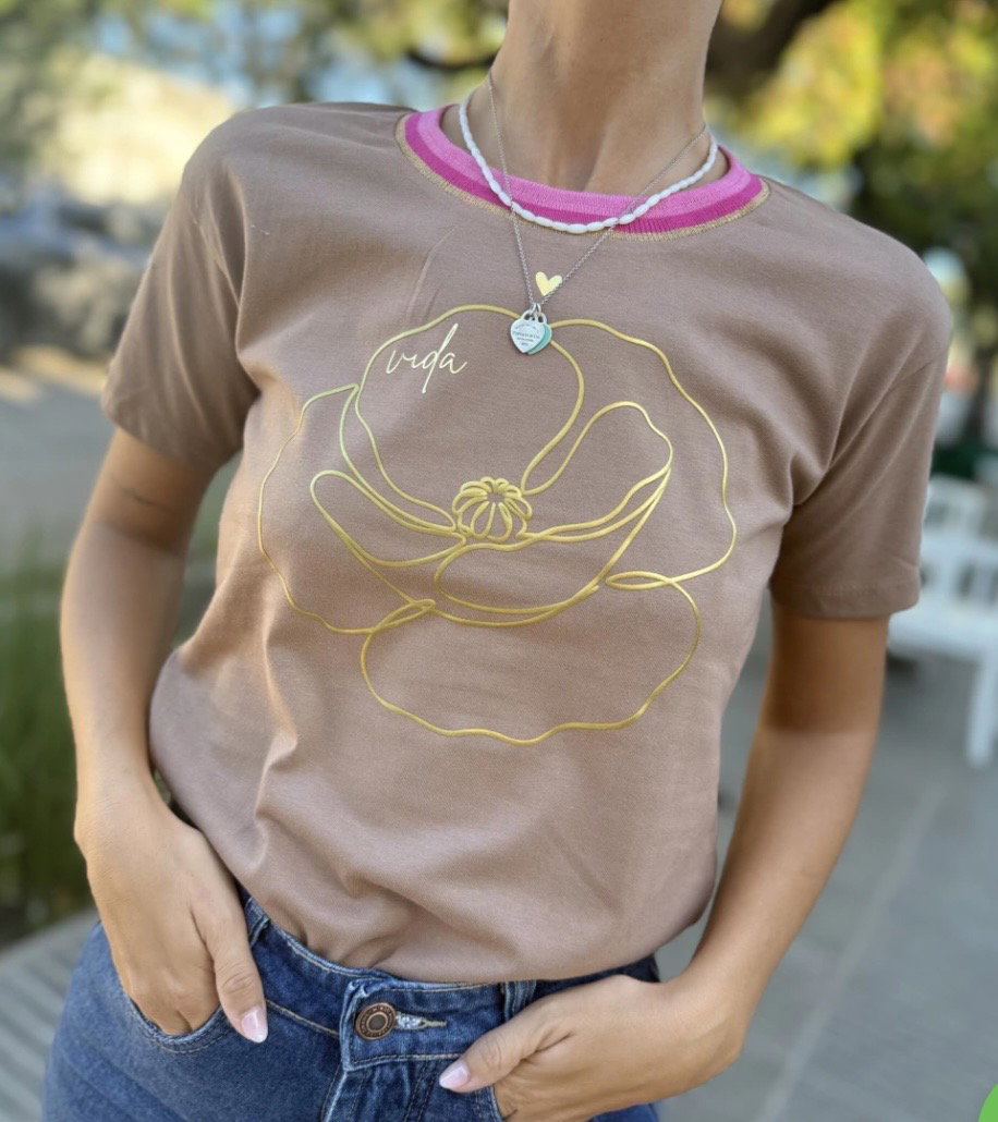 Remera manga corta, cuello tejido.