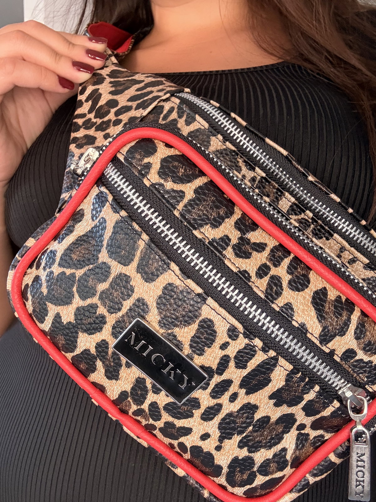 Riñonera confeccionada en PU símil cuero de calidad premium. Un diseño súper funcional: bolsillo superior amplio y dos bolsillos frontales con cierre (mediano y chico) para organizar todo lo que necesitás.