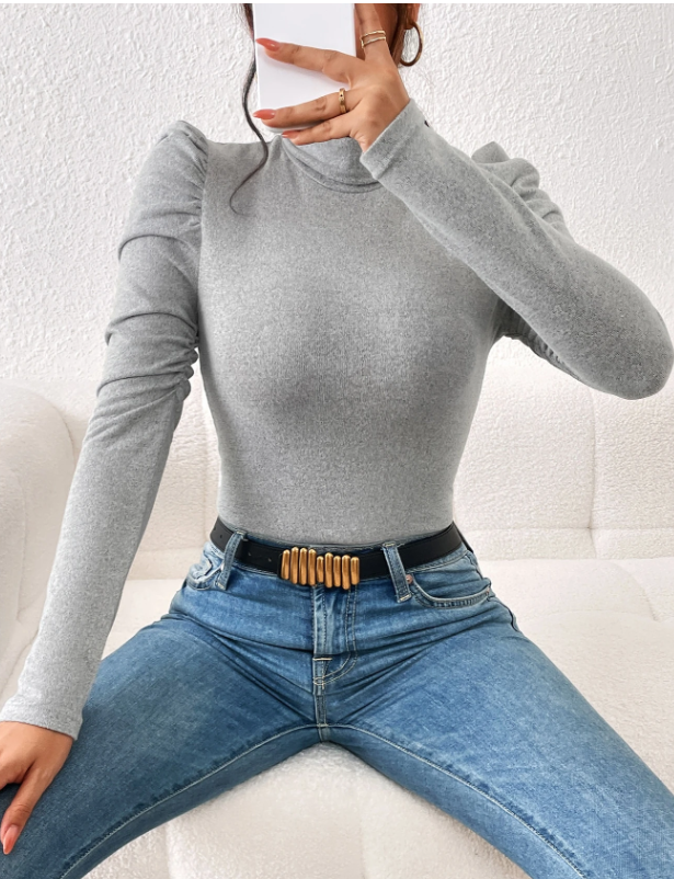 Camisera de lanilla, cuello Cisne y mangas Gigot